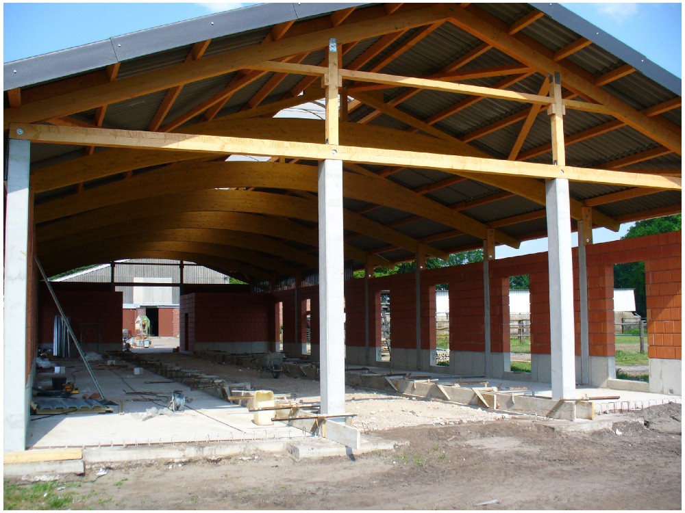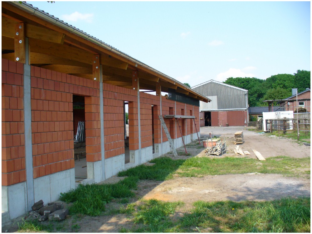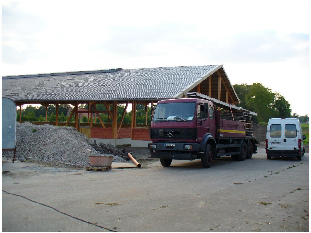 Stand: 06.05.2008 - letzte Holzbauarbeiten am Stall!