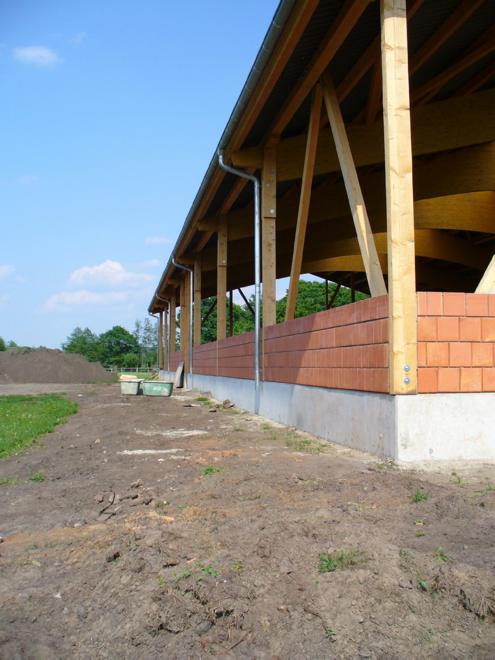 Die Rohbauarbeiten nähern sich dem Ende, unser Hallenbauer und der Bauunternehmer schliessen ihre arbeiten ab.