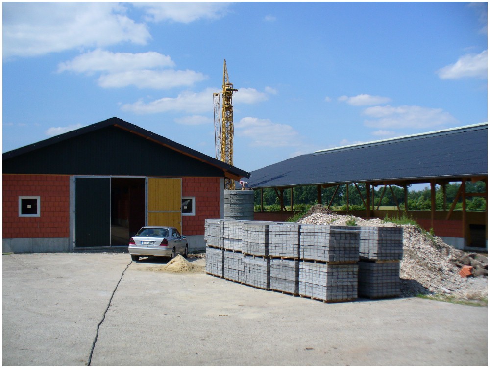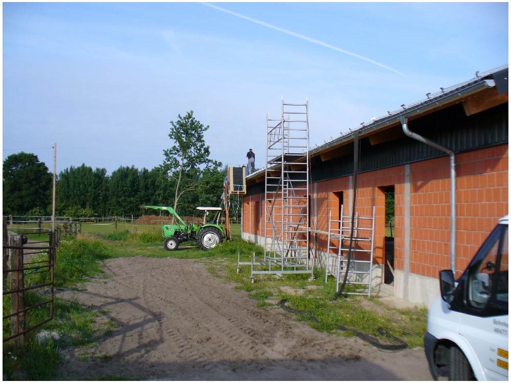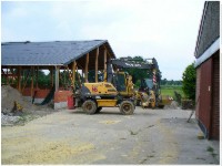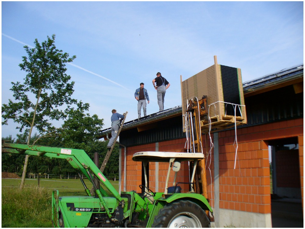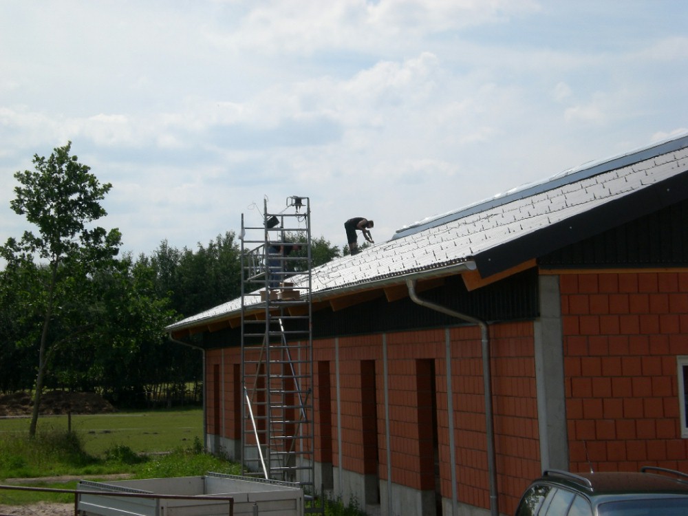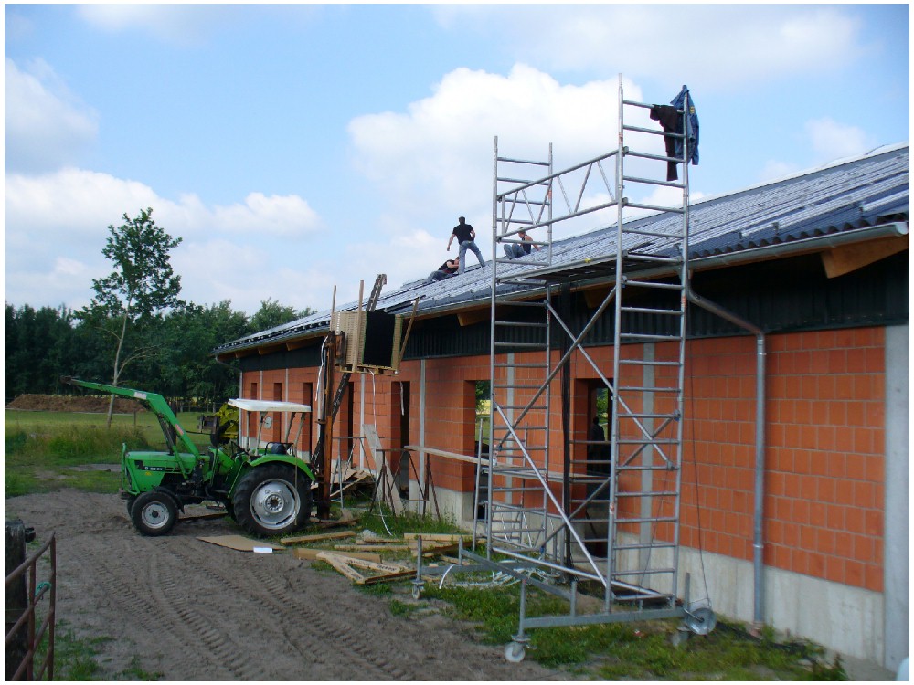 Stand: 21.06.2008 - die Photovoltaikanlage wird montiert und die Stallgasse mit "geballter" Kraft gepflastert!