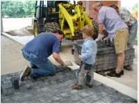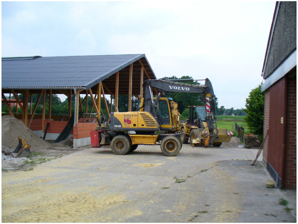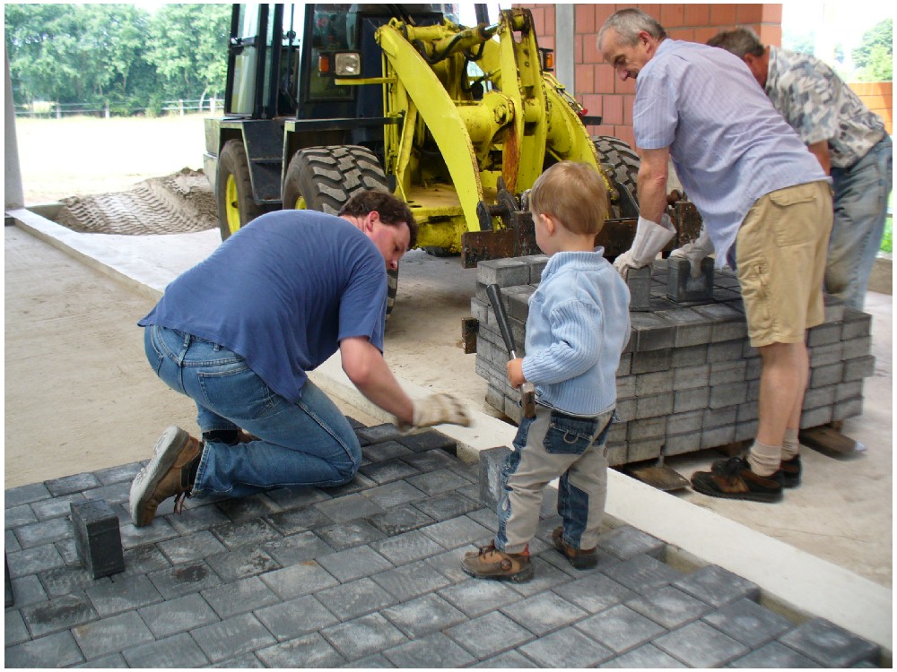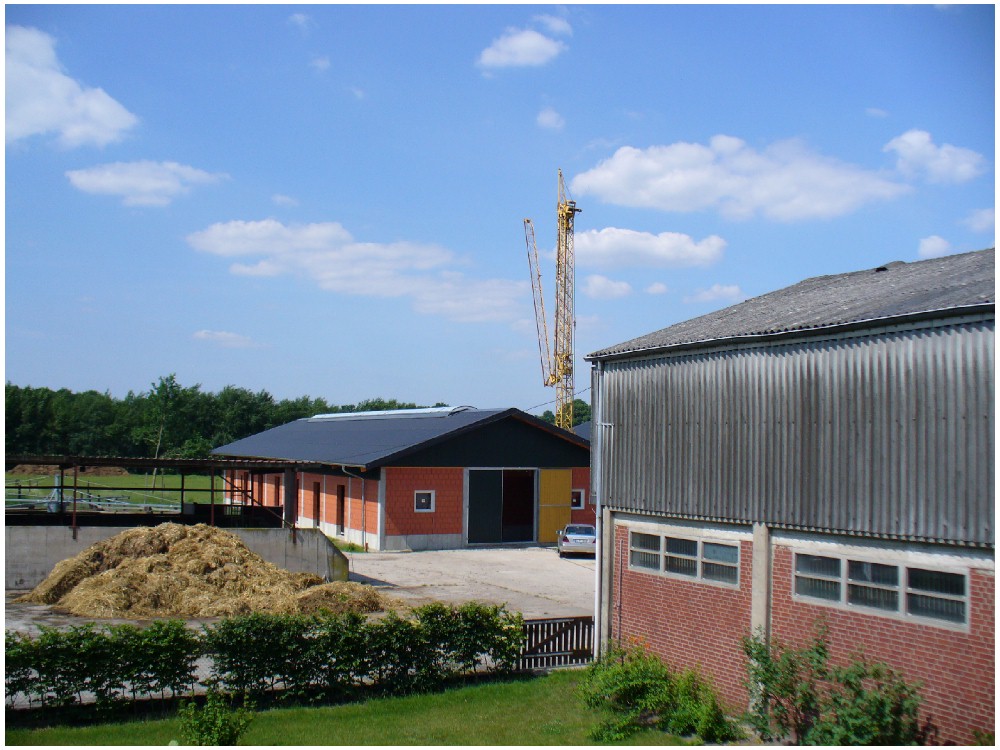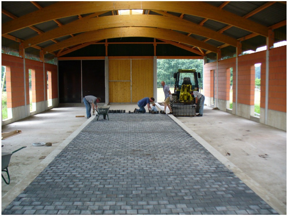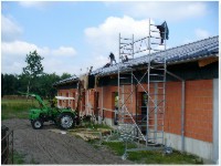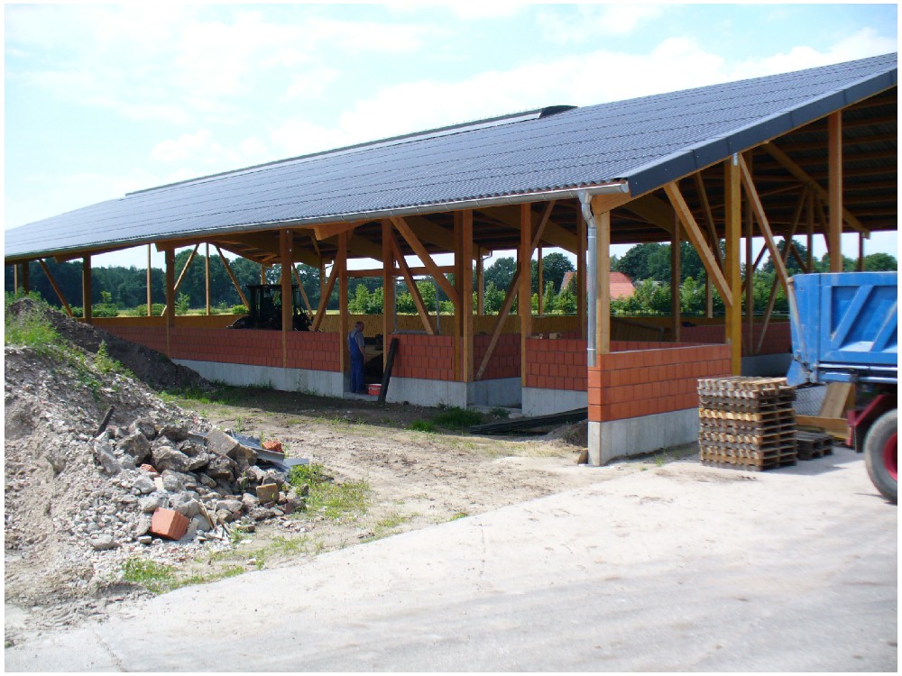 Stand: 21.06.2008 - die Photovoltaikanlage wird montiert und die Stallgasse mit "geballter" Kraft gepflastert!