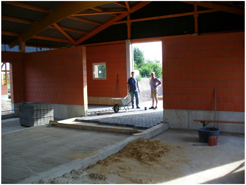 Stand: 17.06.2008 - es wird verfugt und in der Halle wird die Tragschicht eingebracht!